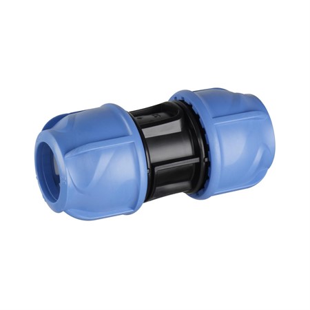 Rak reparationskoppling utan centerstopp. Kompressionskoppling för PE och PEX-rör tillverkad i PP, klämring i POM, tätningsring i EPDM. Behöver ej demonteras före montage.