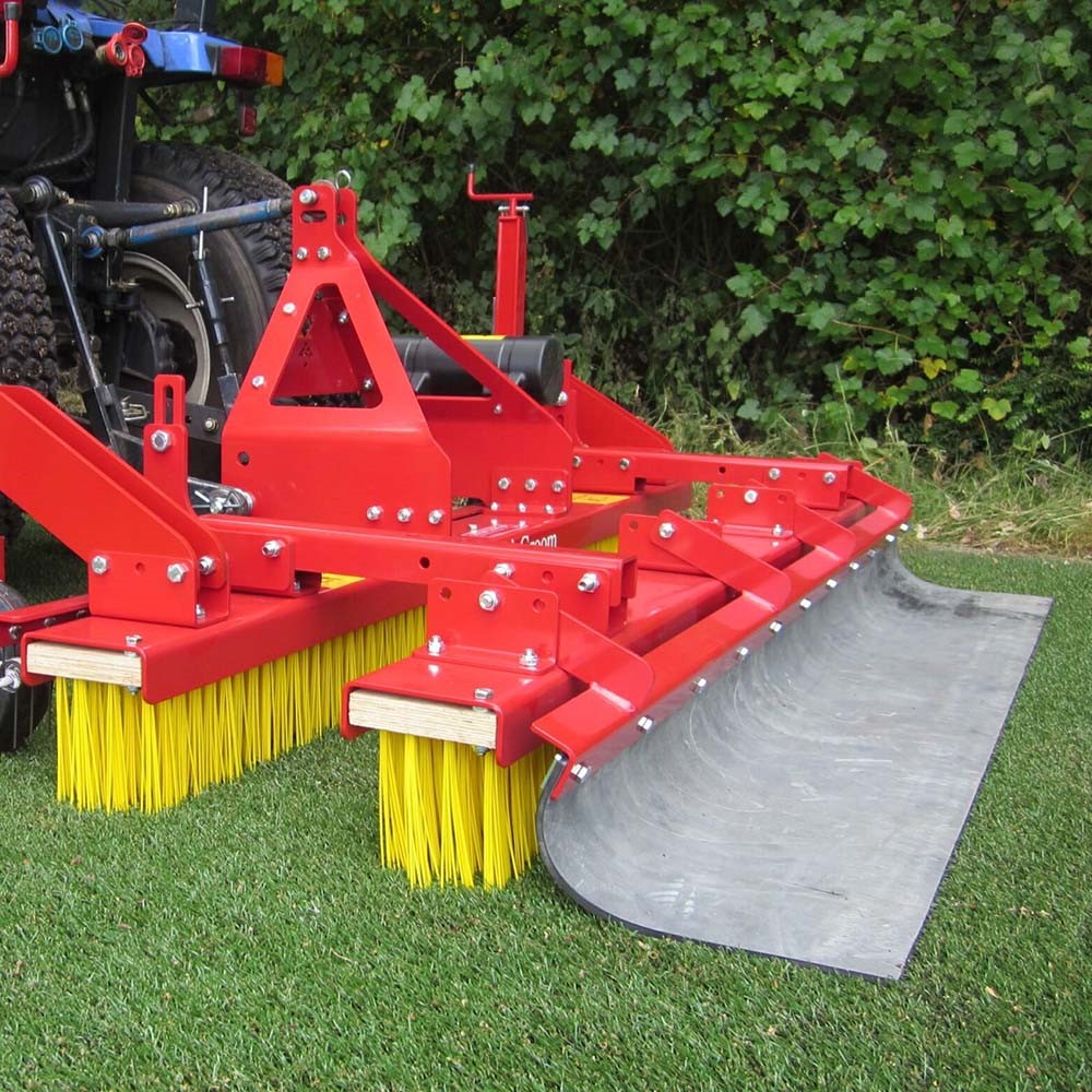 Combi-Groom räfsar och borstar konstgräsytor i ett svep. Det magnetiska systemet samlar upp metalliskt skräp, och Combi-Groom lämnar en uppluckrad, jämn och säker yta. Hjulen möjliggör steglöst justerbart arbetsdjup för att säkerställa resultat och prestanda. Arbetsbredd 200cm