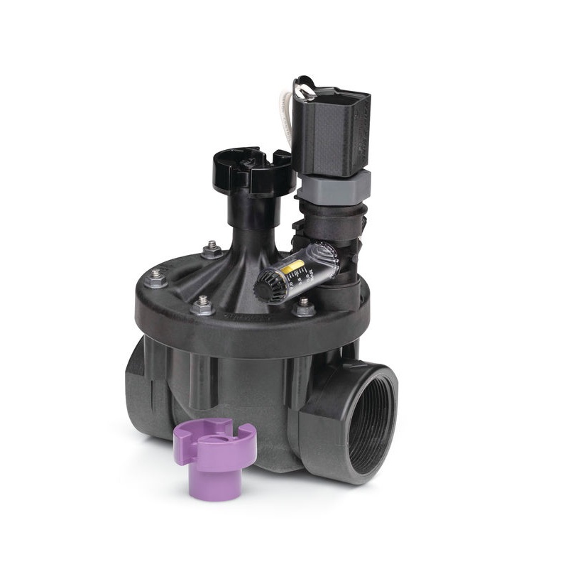 Den inkluderar en PESB-magnetventil (med inbyggd automatisk "skrapa" som rengör membranet från skräp), en PRS-Dial-tryckregulator. Tryckregulatorn ser till att ni alltid har rätt tryck vid spridarna oavsett hur högt tryck ni har på inkommande ledning till ventilen.