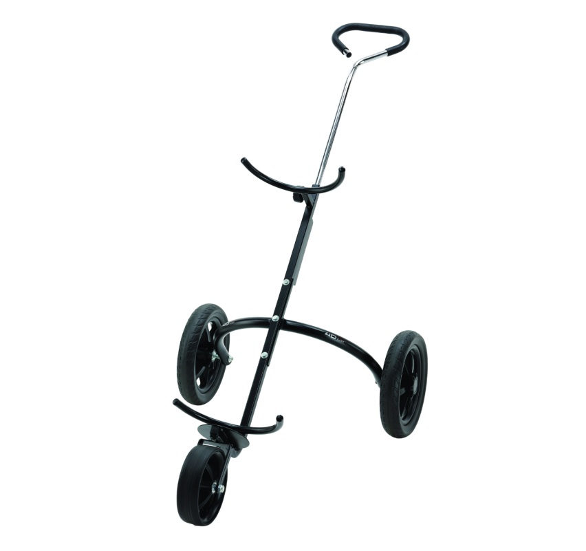 Stripped from everything unnesessary, the core function is clear: it's for easy transport of the golf bag. Practical, sturdy and easily stored.